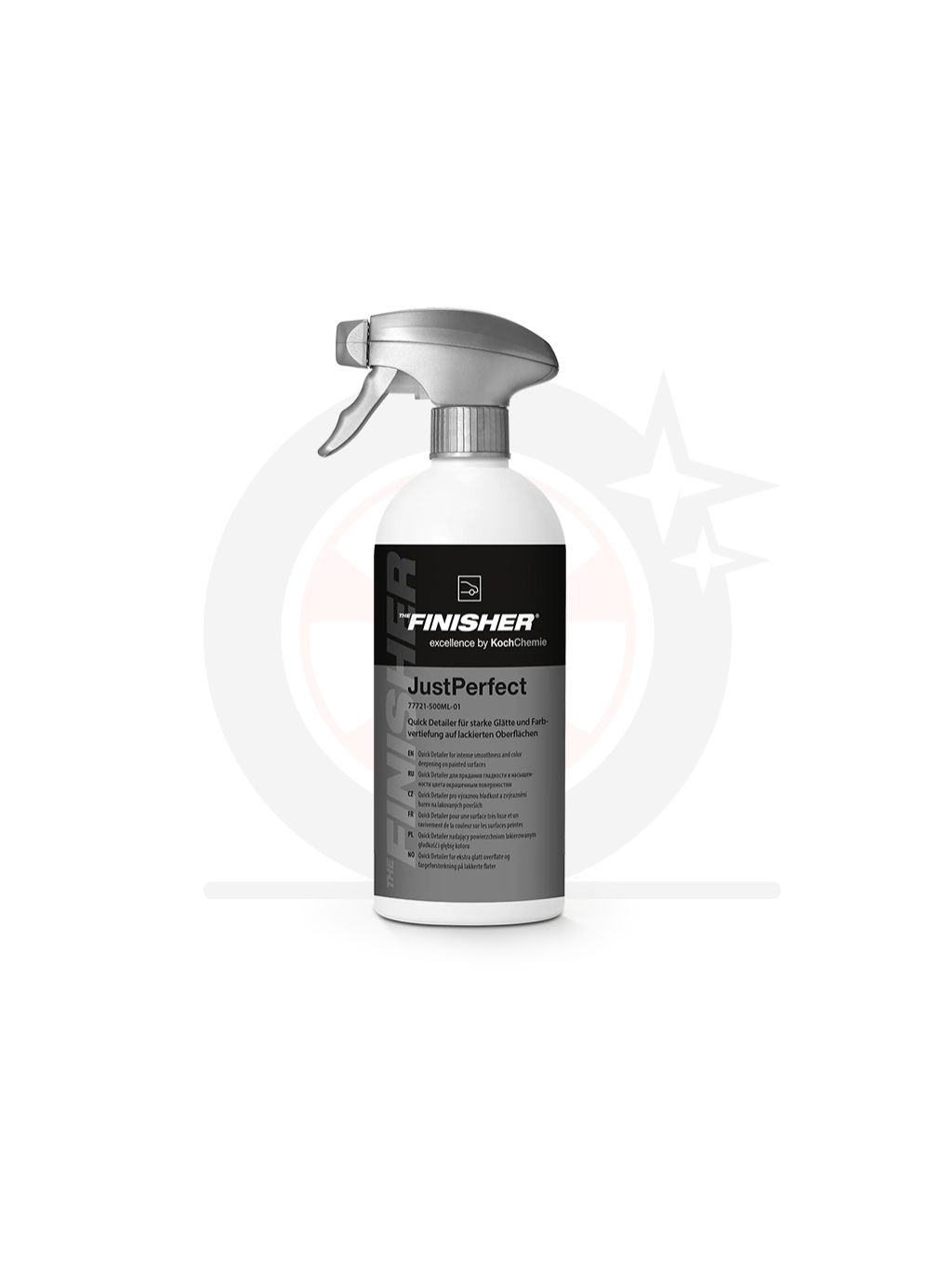 Koch Chemie Finisher JustPerfect je rychlej quick detailer pro hladký a lakovaný povrchy, který čistí, ošetřuje a konzervuje v jednom kroku. Odstraňuje otisky prstů a lehký nečistoty, dodává brilantní lesk, hladkost a zvýrazňuje barvu.