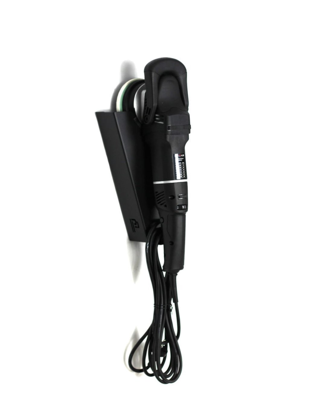 Vysoce kvalitní držák na jednu leštičku s úchytem na kabel, díky čemuž zabere velmi málo místa. Držák je vhodný jak pro DA, tak rotační typ stroje s unašeči o velikosti 30 až 180 mm. Montážní otvory pro přišroubování na zeď jsou umístěny v horní části police, a proto je držák velmi stabilitní. Držák je vyroben z kvalitního kovu, který je nalakován práškovou barvou, která chrání proti oxidaci.