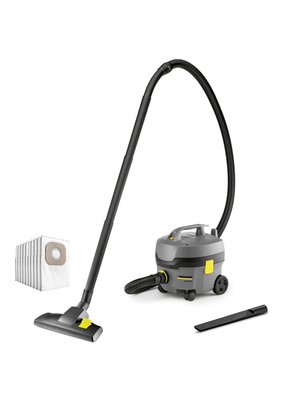 Kärcher T 7/1 Classic Special Edition je kompaktní vysavač na suché nečistoty s výkonem 850 W a silným podtlakem 23 kPa, který přitom pracuje jen s 63 dB hluku. Váží jen 3,5 kg, takže je snadno přenosný, a má 2m sací hadici pro pohodlné manévrování. Vydání Special Edition obsahuje navíc 10 fleecových filtračních sáčků a štěrbinovou hubici, takže máš hned užitečný doplňky v balení.