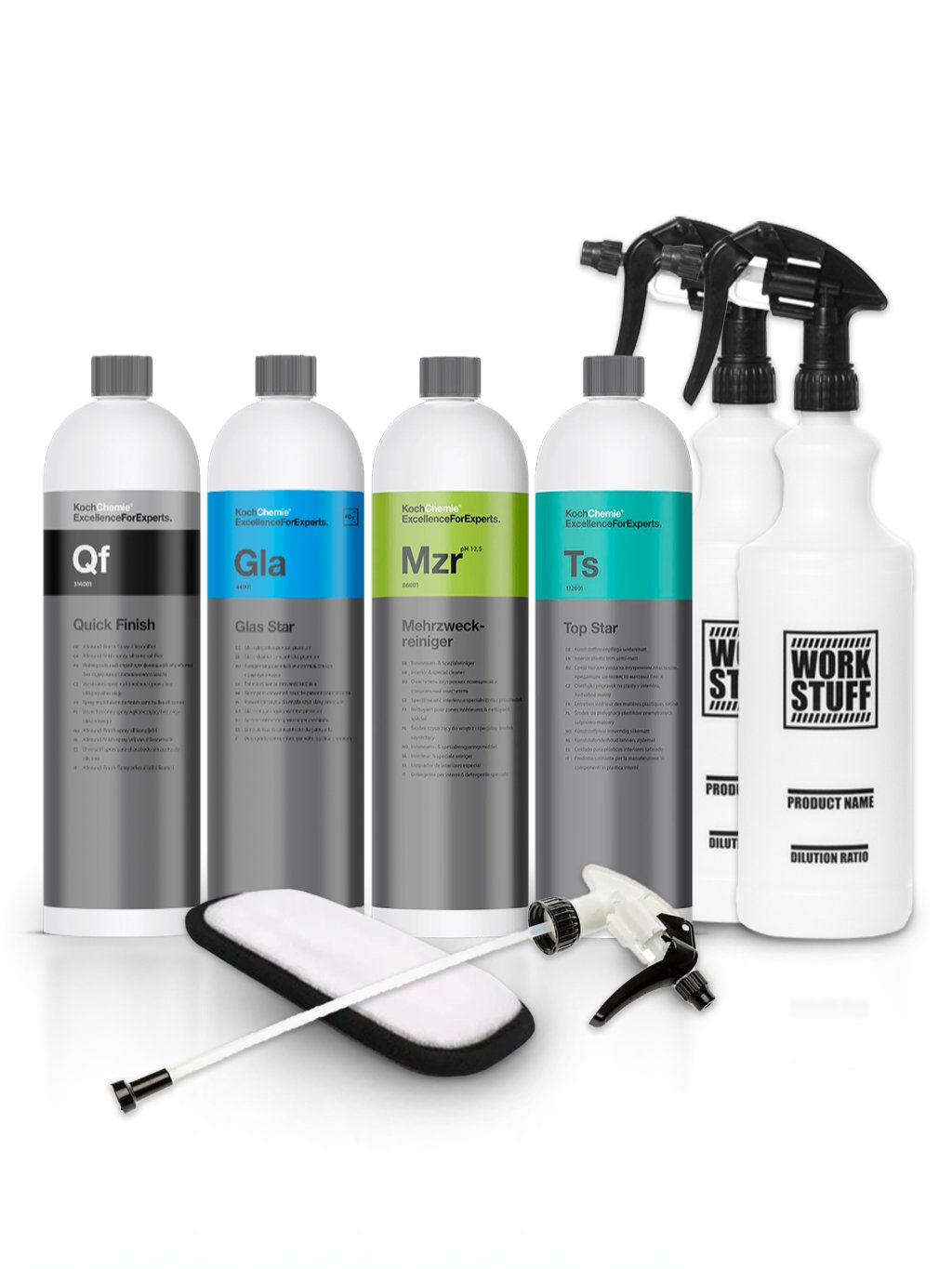Kompletní set autokosmetiky do interiéru pro dokonalou péči o každej detail tvý káry. Obsahuje univerzální čistič pro snadný odstranění špíny a skvrn z různejch povrchů, impregnaci plastů, která oživí barvy a chrání materiály, čistič oken pro křišťálově čistý skla bez šmouh a detailer na šmouhy a prach, kterej dodá interiéru perfektní finální vzhled. Tvůj auťák bude nejen čistej, ale i svěží a upravenej do posledního detailu.