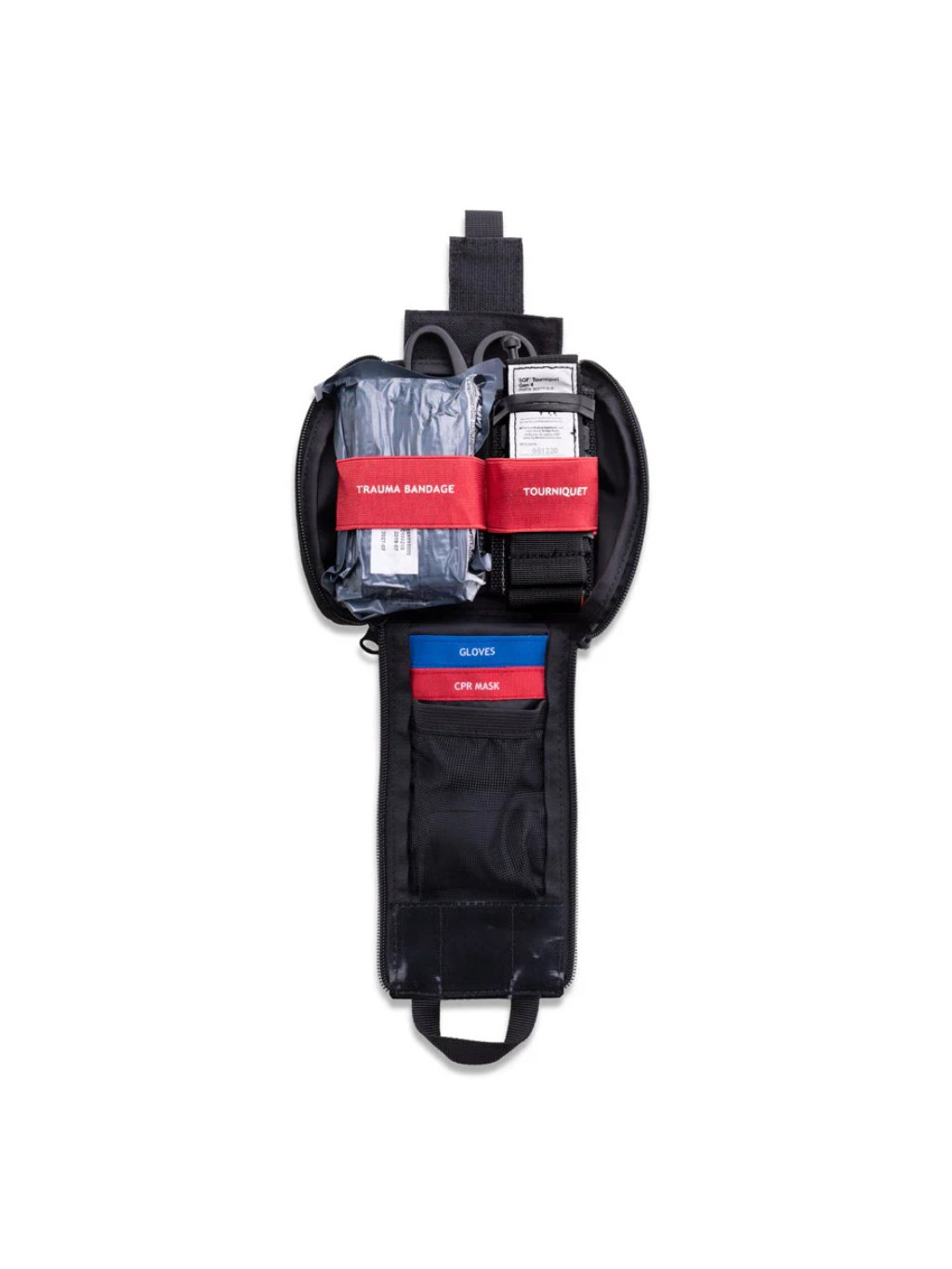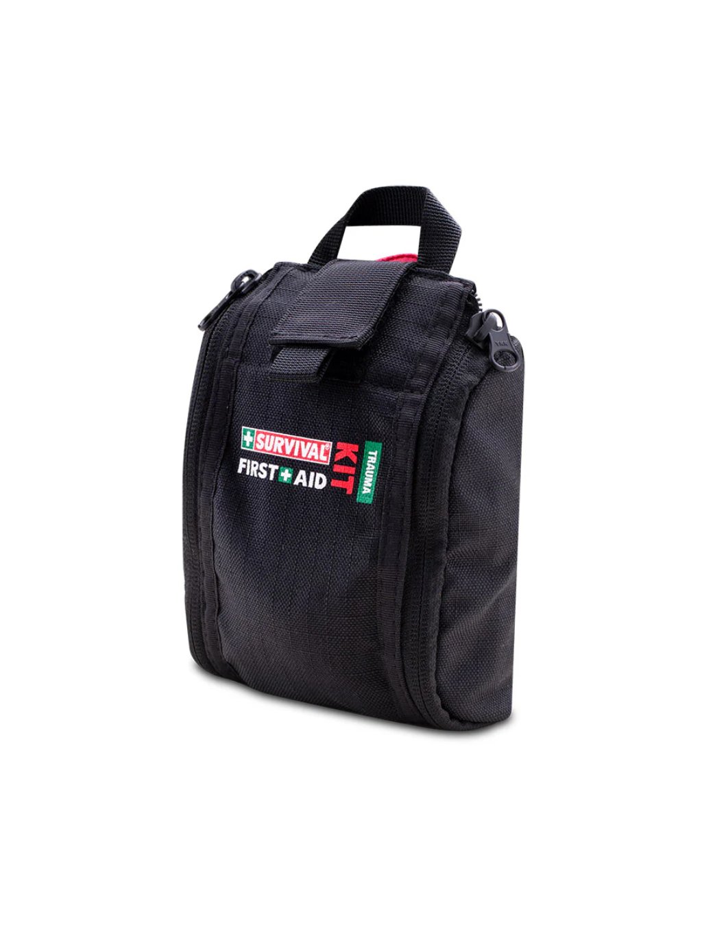SURVIVAL TRAUMA KIT je sestavenej pro situace, kdy rozhodujou vteřiny. Je určenej pro prostředí a aktivity s vyšším rizikem těžkejch úrazů — outdoor, motorový sporty, taktický použití i krizový situace v terénu. Díky bleskovýmu otevření jednou rukou a přehlednýmu rozložení vybavení umožňuje okamžitej zásah tam, kde klasická lékárnička nestačí. Jádrem výbavy je profesionální taktickej turniket TACMED SOF Tourniquet Gen.5 a profesionální T3 Israeli Trauma Bandage, trauma nůžky v černý barvě a ochranný pomůcky. Kit je postavenej tak, aby zpomalil či zastavil masivní krvácení a stabilizoval zraněnýho do příjezdu ZZS. Díky kompaktní velikosti ho můžeš nosit na opasku, batohu nebo výstroji — a díky MOLLE systému ho upevníš kamkoli, kde ho potřebuješ mít ihned po ruce.